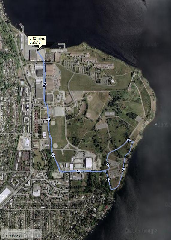 To start off the new year right, Bruce, Malcolm, and I ran in the Resolution Run 5K at Magnuson Park, an old naval air station here in Seattle on Lake Washington. It was reasonably warm for January in Seattle (high 40's) with no rain, but it was bit windy -- in our face for the outbound leg. The course was flat (a nice change), so there was really no excuse for a slow race (other than being fat, old, and slow with aching shins).