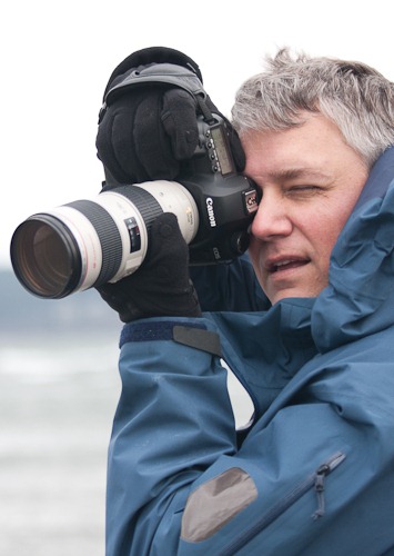 The second day started with a great lecture on the different lenses he uses and more importantly, how he uses them. Interestingly, he seems to use only a small number of lenses on a regular basis, bringing in others as needed. The 16-35 and 70-200 are his primary lenses. He uses others such as the fish-eye and 500mm+ in special cases. He also uses a 24-105 as a walking-around lens as well as for some aerial shots. I was a bit surprised to hear that he uses the Canon 70-200 f4 instead of the 2.8; the quality is still very good and it weighs less. Since he's shooting on a tripod most of the time and since digital cameras have usably go to higher ISOs, the weight is a good tradeoff against the extra speed. He also doesn't seem to shoot much with normal lenses (50mm range). Since they produce photos like we normally see them, his contention is they make for uninteresting shots.