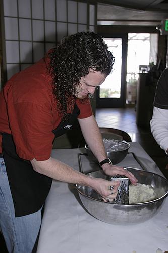 Chris grating potatoes (and hopefully not his fingers.)
