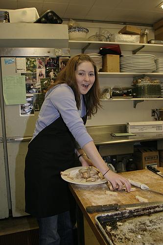 Jenny caught noshing on bread in the back room.