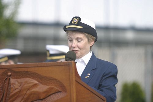 Fleet Chaplain Meg Lewis provides an invocation during the Commissioning Ceremony.
