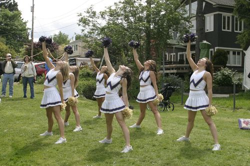 University of Washington cheerleaders rooting for UW crew.