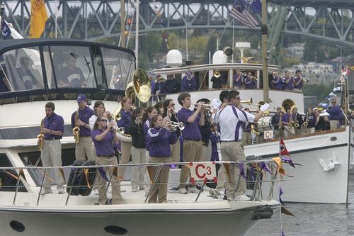 University of Washington marching band in the boat parade.